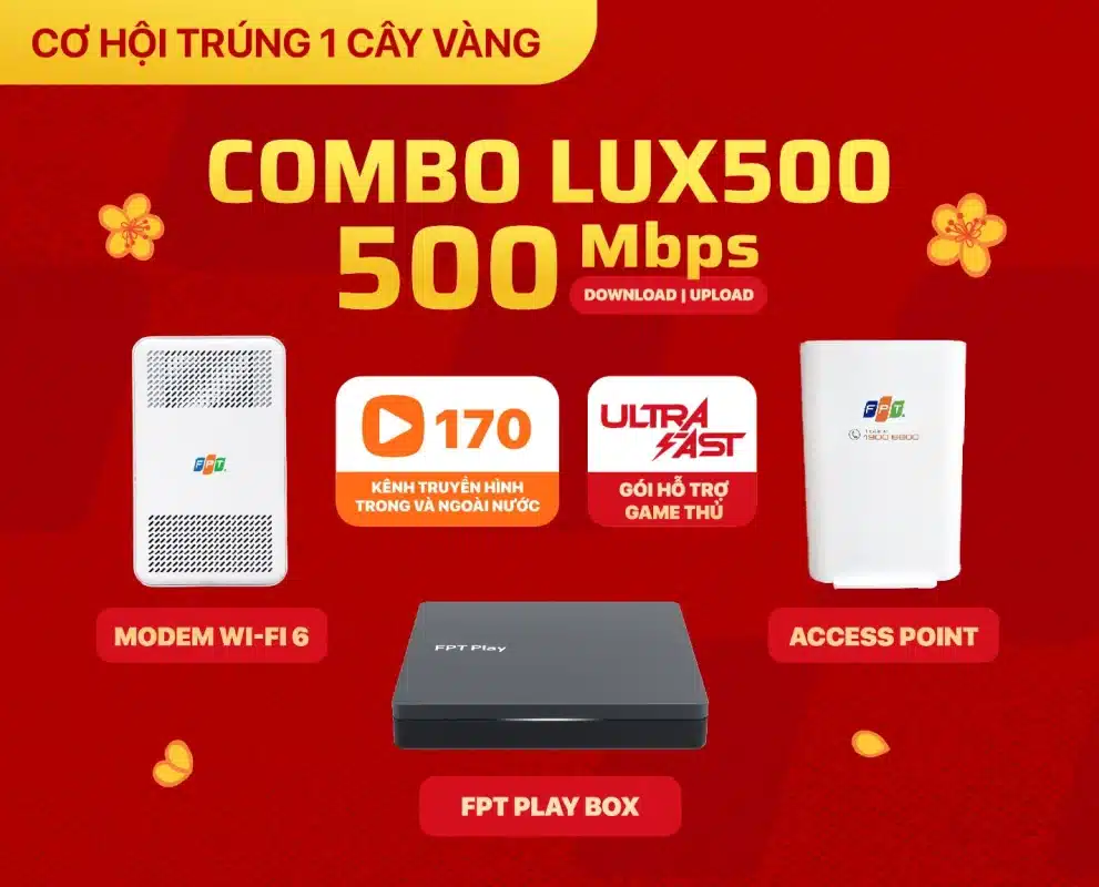 FPT Telecom giới thiệu gói cước Internet combo doanh nghiệp truyền hình LUX500 cao cấp, một lựa chọn lý tưởng cho cá nhân và hộ gia đình lớn, đáp ứng mọi nhu cầu cao từ lướt web, làm việc trực tuyến đến giải trí, stream. Với tốc độ tải xuống và tải lên đồng đều 500 Mbps, gói cước này đảm bảo kết nối nhanh chóng và ổn định cho mọi thiết bị.